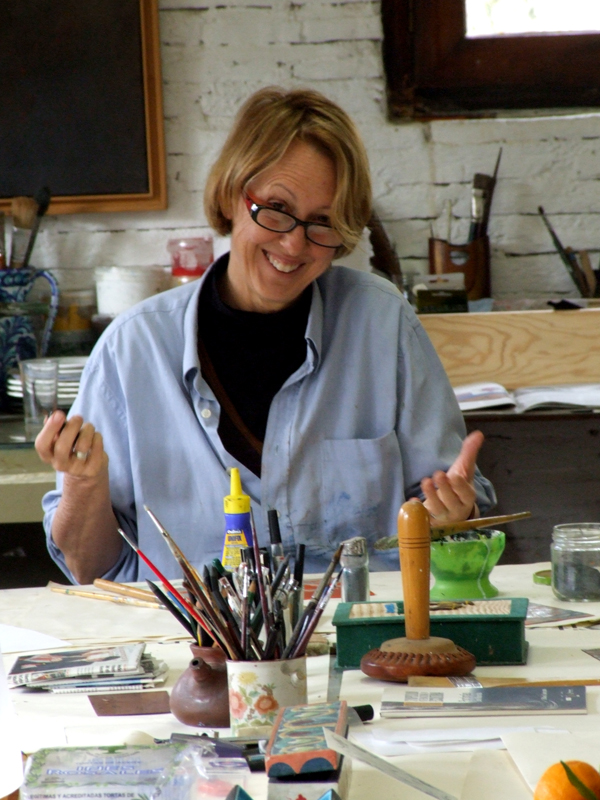 My husband, Mel, and I have stepped out of the cold February weather of Colorado to enjoy the sun on the little deck to draw, work on prints and sip a little afternoon wine. The view across the valley to the south dips to the River Genil and then up the steep terraced hillside carpeted with green and glowing with blooming almond trees. The Booths have cultivated an exotic garden here which immediately captivated me. The local nopal, prickly pear cactus clumps, are fascinating and I did several prints based on those forms. In Maureen’s studio you can try out different approaches to printmaking and with her help you can find one that relates to the direction of your art. Maureen and Mike are very generous in their concerns for your comfort and the success of your art goals. We couldn’t have asked for more caring and attentive hosts.