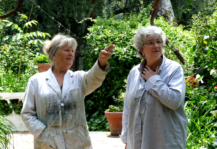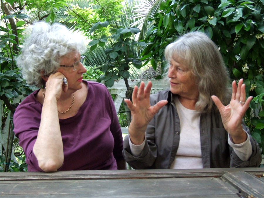 - Isabel Mitchell (left) taking a break in the shade with Maureen