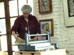 A lot of printmakers may identify with Isabel Mitchell. She graduated with a degree in fine arts, then got married, had a family, and finally went back to school and got herself a “sensible degree.” Then she worked in business for a couple of decades, always yearning to get back to art. It was in this frame of mind that she stepped on a plane in Toronto three weeks ago, stepped off it in Spain’s Málaga airport, rented a car (and a GPS) and drove the two hours up to Maureen’s studio in Granada. She was to stay in the Gallinero residence for two weeks of saturation printmaking.