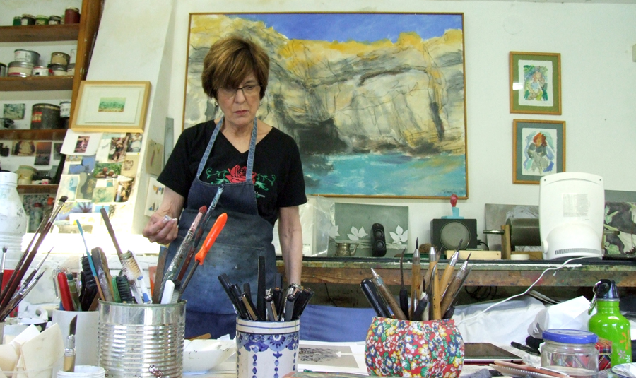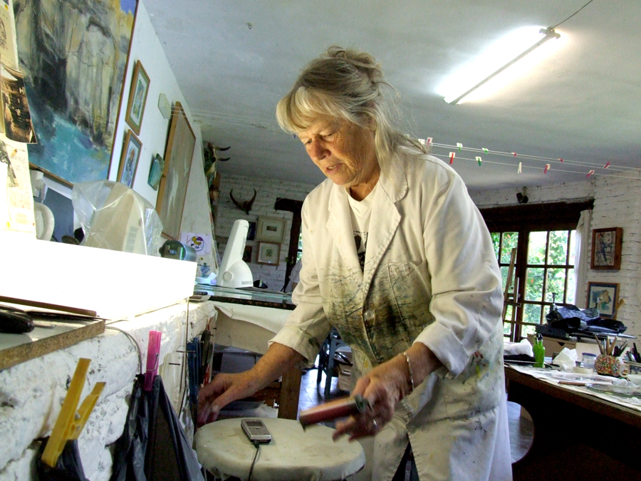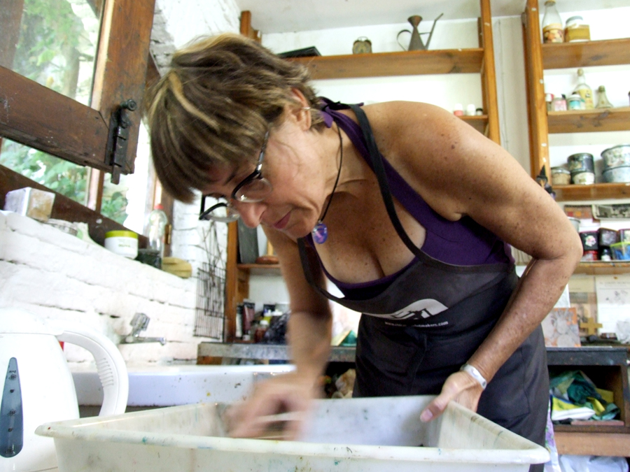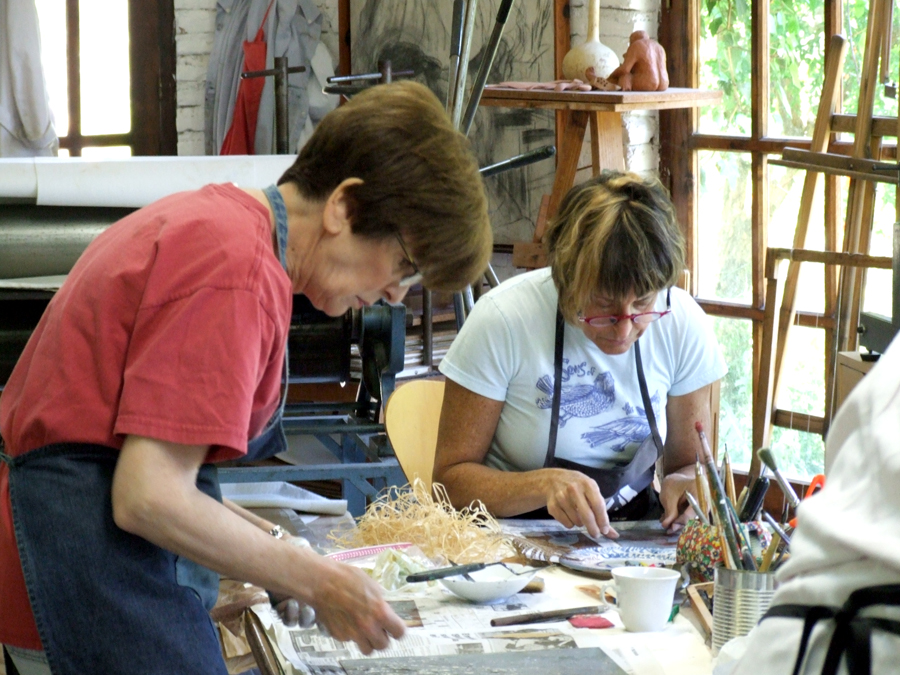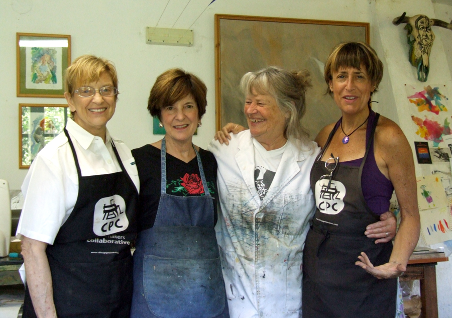 The Chicago Girlz (our affectionate nickname), an extraordinary trio of printmakers made up of Deborah Lader, founder and director of The Chicago Printmakers Collaborative, her mother Carol Lader and Carol’s sister (Deborah’s aunt) Janet Imerman, have set new benchmarks for printmaking zeal in my studio. These remarkable young people stepped off the Chicago-Granada flight (Janet was actually coming straight through from Los Angeles) at midday last Monday, put down their bags in the Gallinero, rested for a whole hour and then proceeded to my studio to begin making prints.
