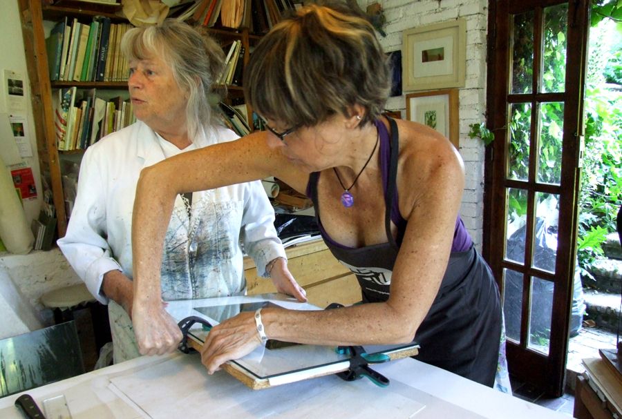 They had never done solar-plate prints before, and were anxious to immerse themselves in the techniques and get a grip on them once and for all. This was particularly true for Deborah, who wanted to determine whether solar plate was something she should be offering in her own studio in Chicago. She concluded that it was.