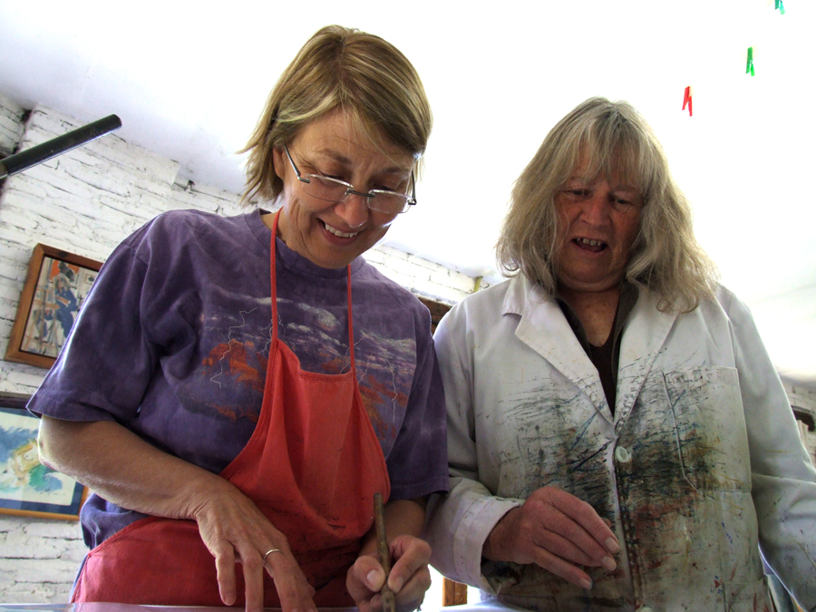 To any painters and writers, as well as print-makers – if you are considering a creative holiday at Maureen and Mike’s, DON’T HESITATE! After a 2 week stay last summer, I brought my husband back with me this April, and he couldn’t believe I didn’t rave about the experience more (actually I did, but seeing is believing!) Both Maureen’s light filled studio and the workspace in El Gallinero are perfect for inspiration and production. Maureen is an inventive, creative, supportive teacher and, in short, is my favorite art collaborator (I miss you already!) Yet it’s not all about the work, there are buses to transport one to Granada or the mountains, there’s the full moon over the uninhabited mountain view from the terrace, and there’s a sleepy little village a 5 minute walk away. A favorite last memory is a long (4 hour!) lunch in the sun there by the river… Come for a stay with your projects, your music, and your ideas and you will be glad you did. Best, Cathy and Mike Naro, Chicago, IL