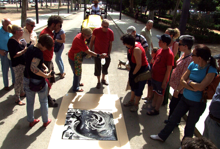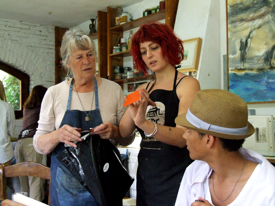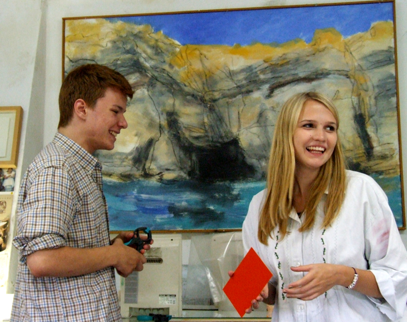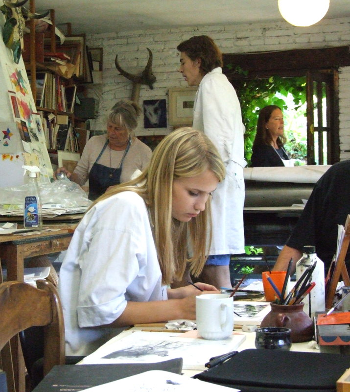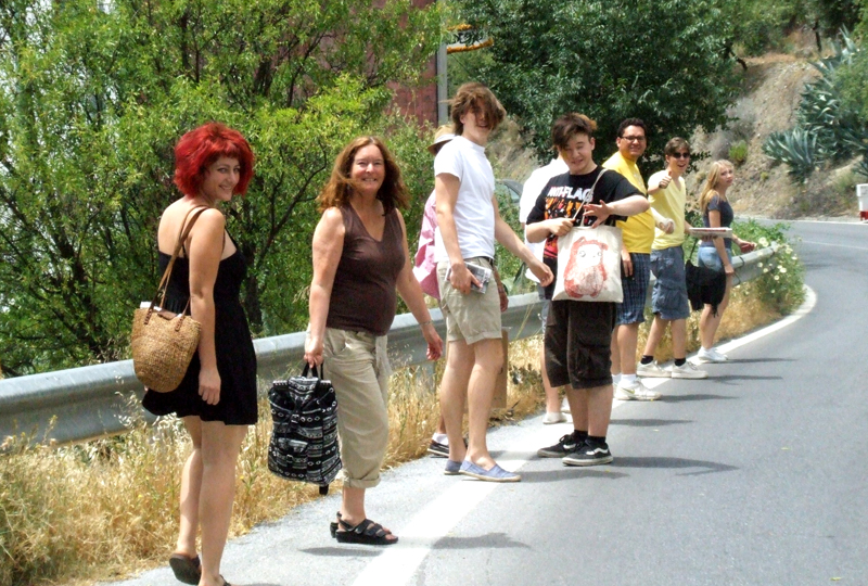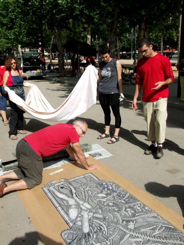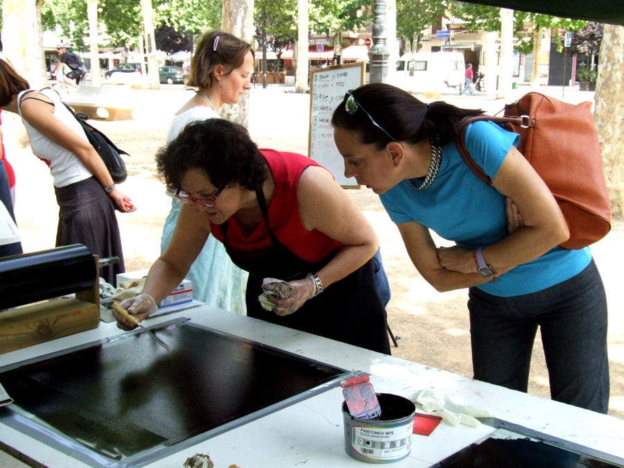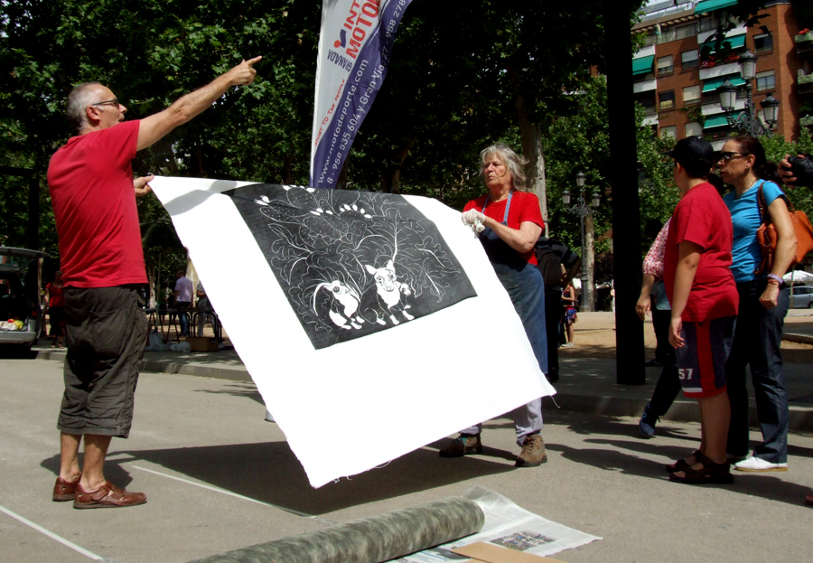 I say “artists,” rather than “art students,” as these young people from Brenda Eubank-Ahrens’ art class at the International School of Bremen functioned with all the maturity, concentration, enthusiasm and talent of fully-fledged artists. (Have a look at some of their solarplate work in the album of photographs which follows. This is only the monochrome work from the first two days. We didn’t print their color stuff till the last day and Mike didn’t have the chance to shoot it, as he was busy preparing the big end-of-course barbecue.) This was the third year running that Brenda has come to Granada with a group of 17-18 year olds, and it was, again, a great pleasure to work with them.