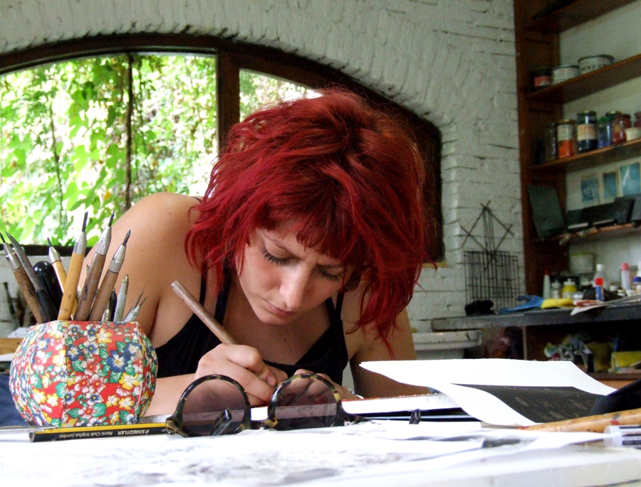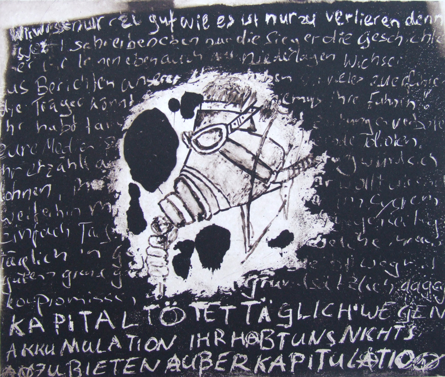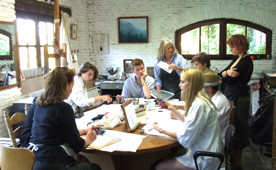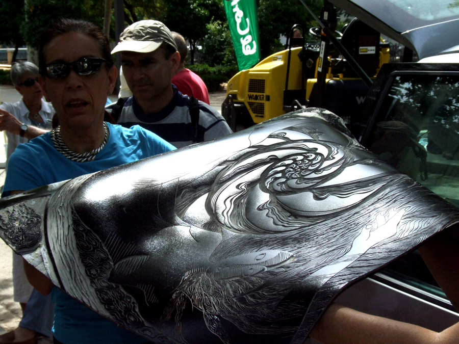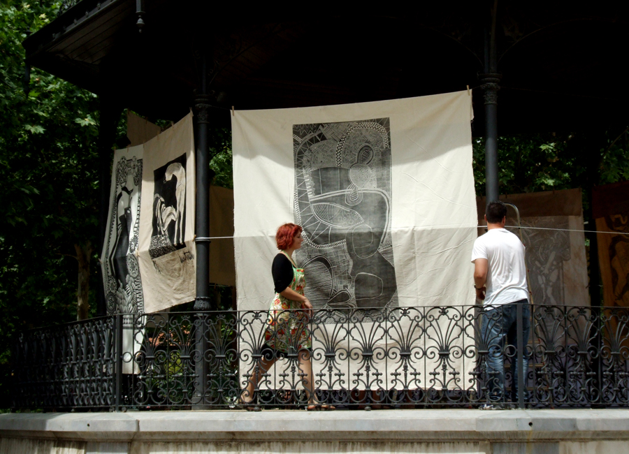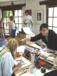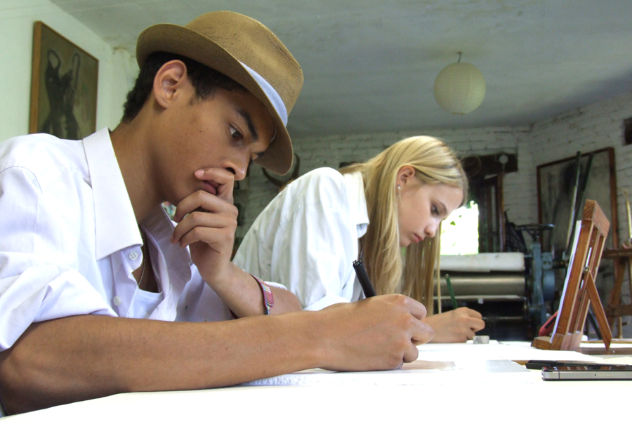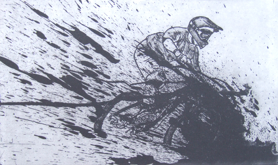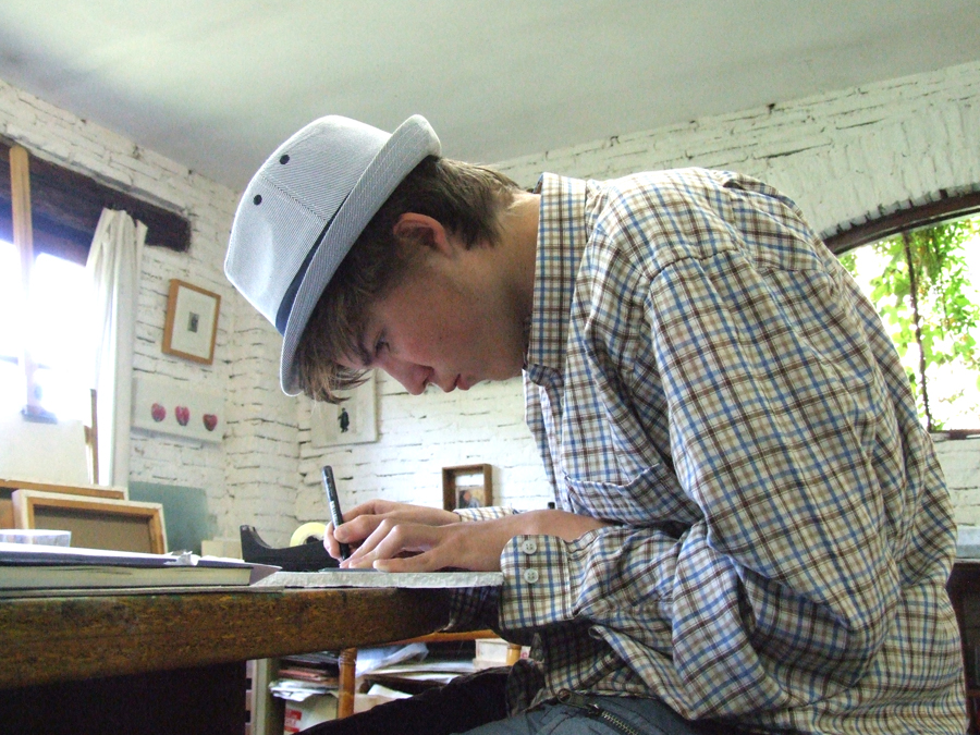 I say “artists,” rather than “art students,” as these young people from Brenda Eubank-Ahrens’ art class at the International School of Bremen functioned with all the maturity, concentration, enthusiasm and talent of fully-fledged artists. (Have a look at some of their solarplate work in the album of photographs which follows. This is only the monochrome work from the first two days. We didn’t print their color stuff till the last day and Mike didn’t have the chance to shoot it, as he was busy preparing the big end-of-course barbecue.) This was the third year running that Brenda has come to Granada with a group of 17-18 year olds, and it was, again, a great pleasure to work with them.