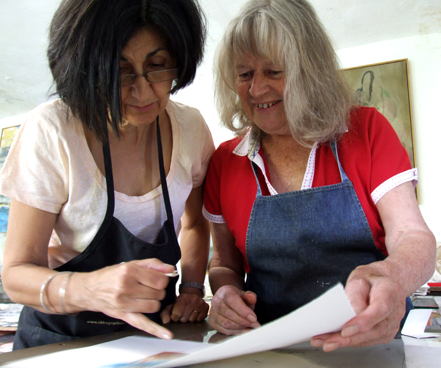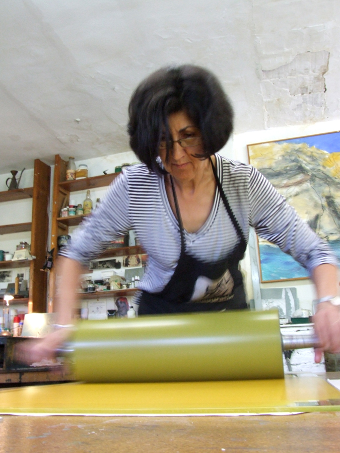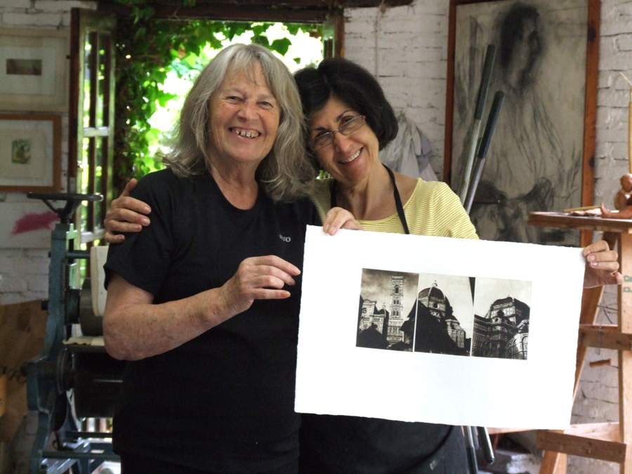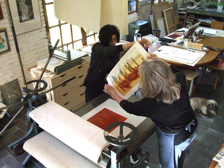 I googled “printmaking summer school” and Spain stood out in the search results. Nothing there impressed me much until I discovered Maureen’s site. I think it was the brief video previews of her Printmaking Master Classes series that convinced me that she was a person I could work with and learn from. I wasn’t wrong. In just a couple of days working together Maureen became my maestra and a lifelong friend.