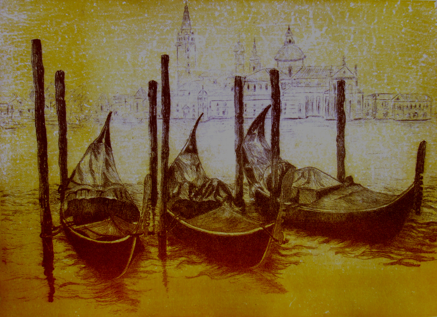 The truth is I had low expectations. I had an idea of what I needed–freeing up–but I wasn’t sure how to go about it. I also needed some time for myself. I wasn’t particularly interested in sightseeing or shopping (Though I had time to do a bit of both; the Alhambra is not to be missed.) I just wanted to learn in order to fulfill a lacking in myself. I thought perhaps Maureen’s solarplate and liquid metal processes might help me. Underlying the whole project was the idea of an homage to my son, Shimon, who was devoted to art during all of his too-short life. I wanted to continue what might have been his life’s work.