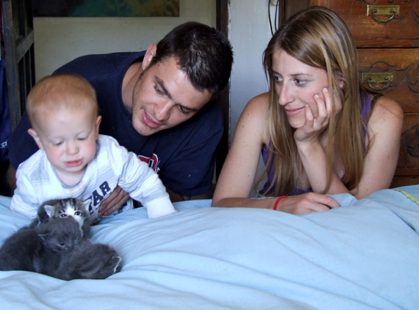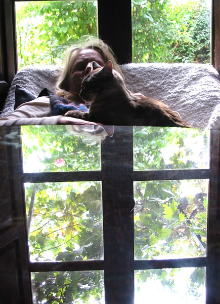 And two cats: Mica, the grey grandmother who still tries to hunt with no teeth, and Rosie, the newborn kitten who turned up virtually dessicated in our pantry, responded to skim milk from a syringe and soon became fat and sassy.