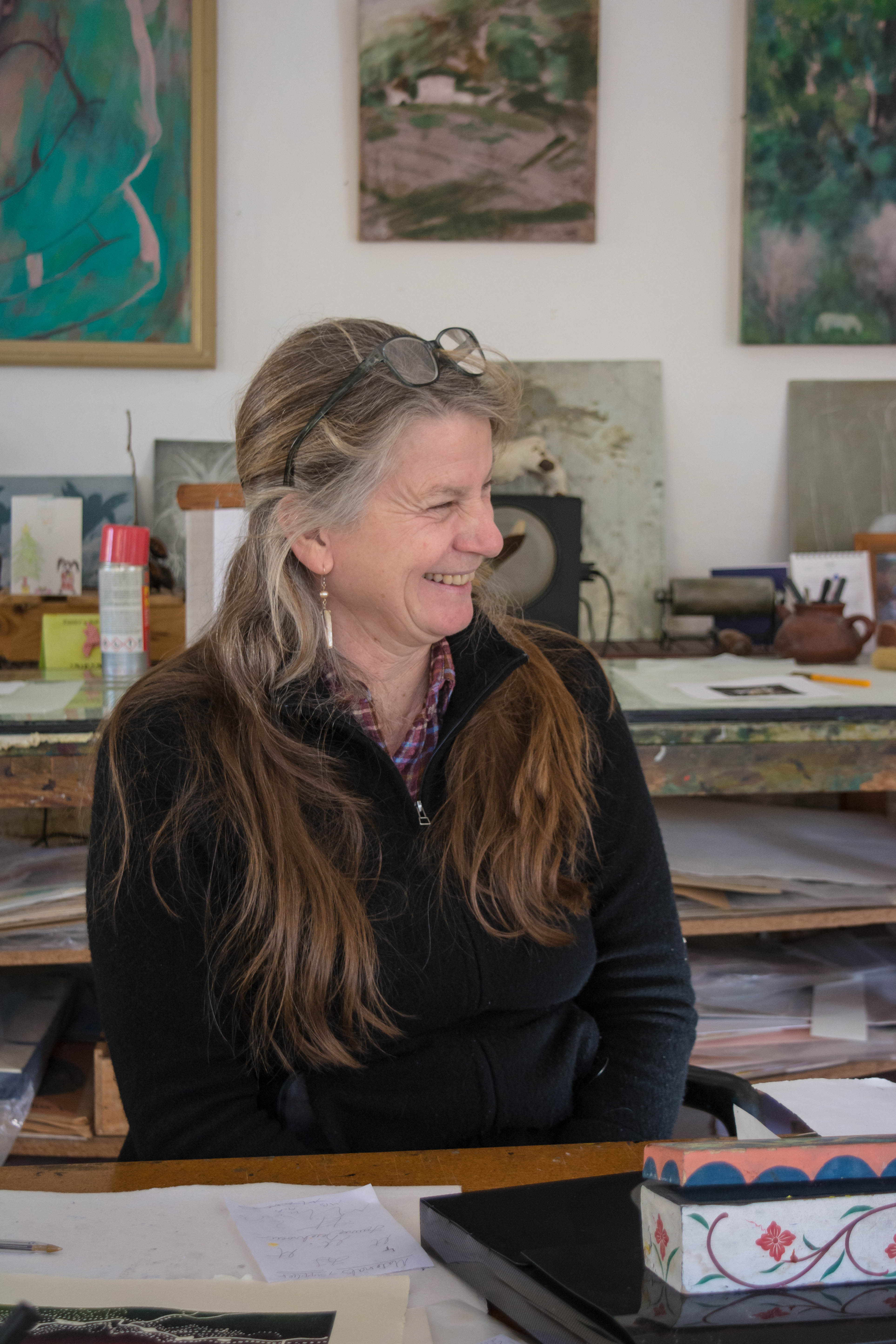 A few months ago I got an email from a woman from Seattle. Farther than that, actually, four hours by ferryboat and car farther, out in the Straits of Juan de Fuca, on the Island of Lopez. Laurie Teichroew had decided she needed what she calls “a reset.” She had lived a few lifetimes already, as a mother of five beautiful children, homeschooled for seven years, and celebrated a boatload of grandchildren; worked as as a bread-maker, and a landscape designer (“I also dig.”) It was time for her to do something she had always wanted to do: art. She had done an over-all-survey-of-printmaking course in college, but it was hardly enough to base a life project on.