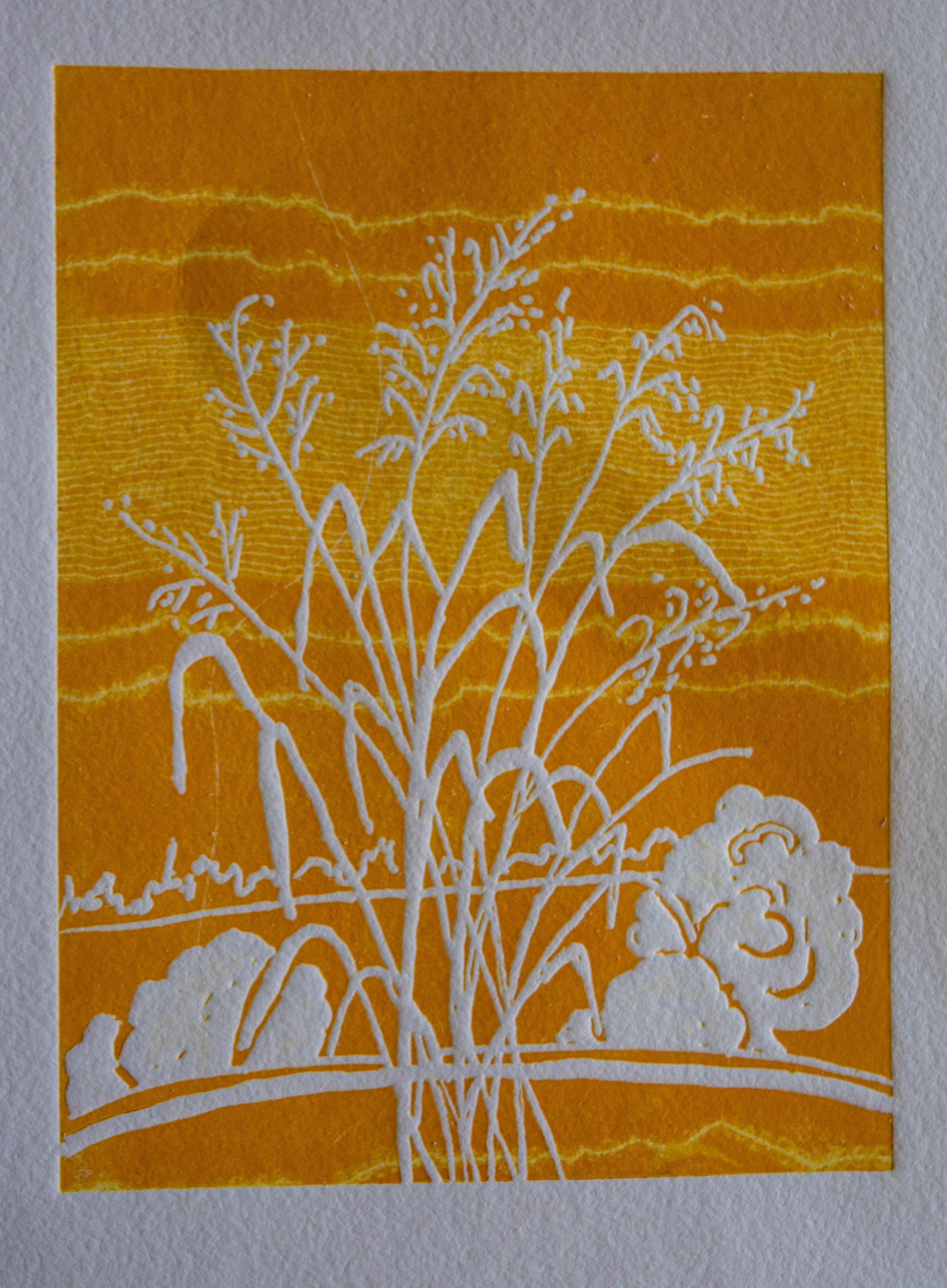 Her first steps were promising. She soon had a dozen or more exhibit quality prints on a selection of beautiful handmade papers and the results were impressive. Just before she left I said to her, “The first thing you have to do when you get home is to show these prints to as many people as possible. Also, if there’s something you need that you can’t afford, propose swapping it for a print or prints.”