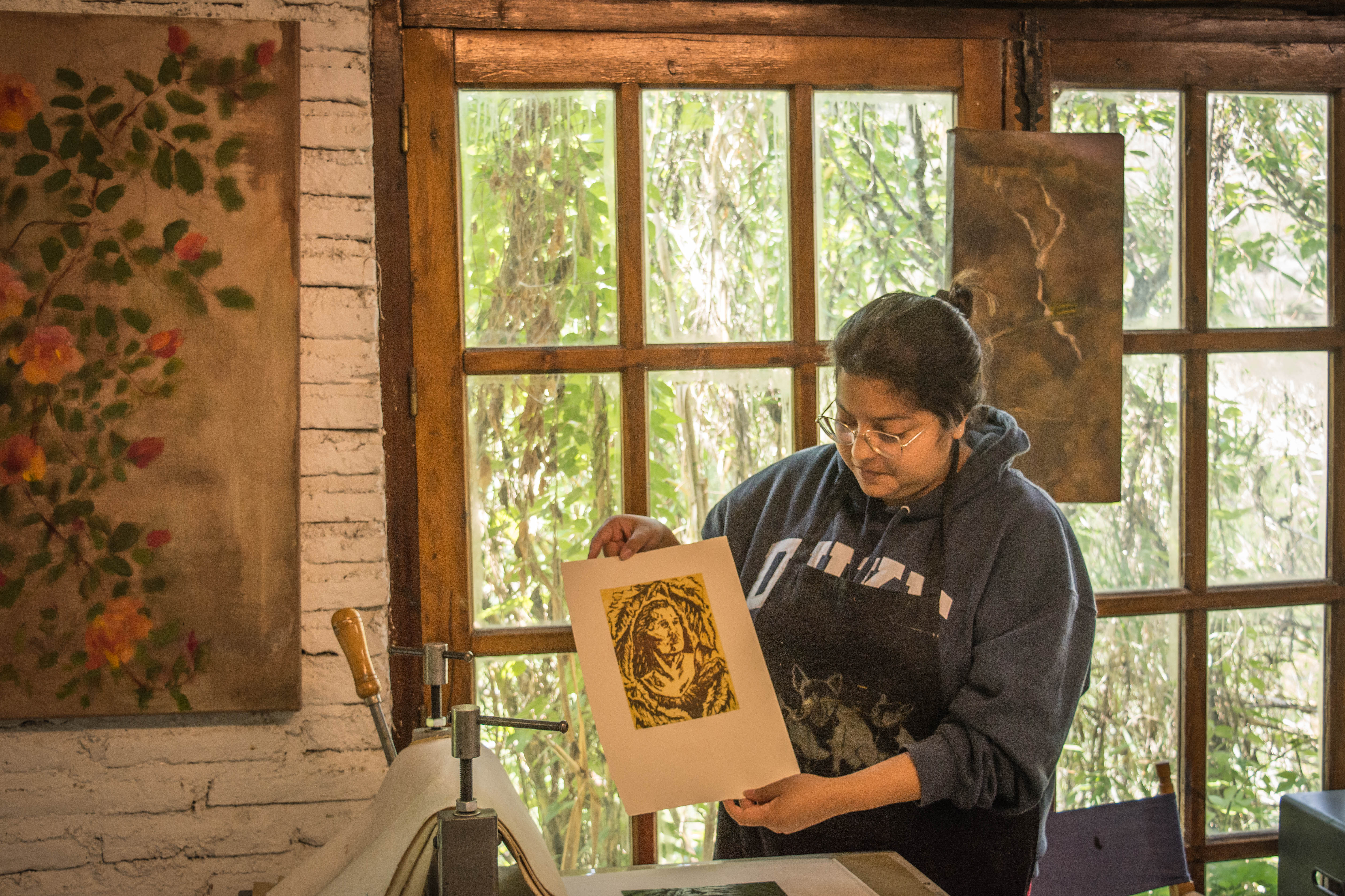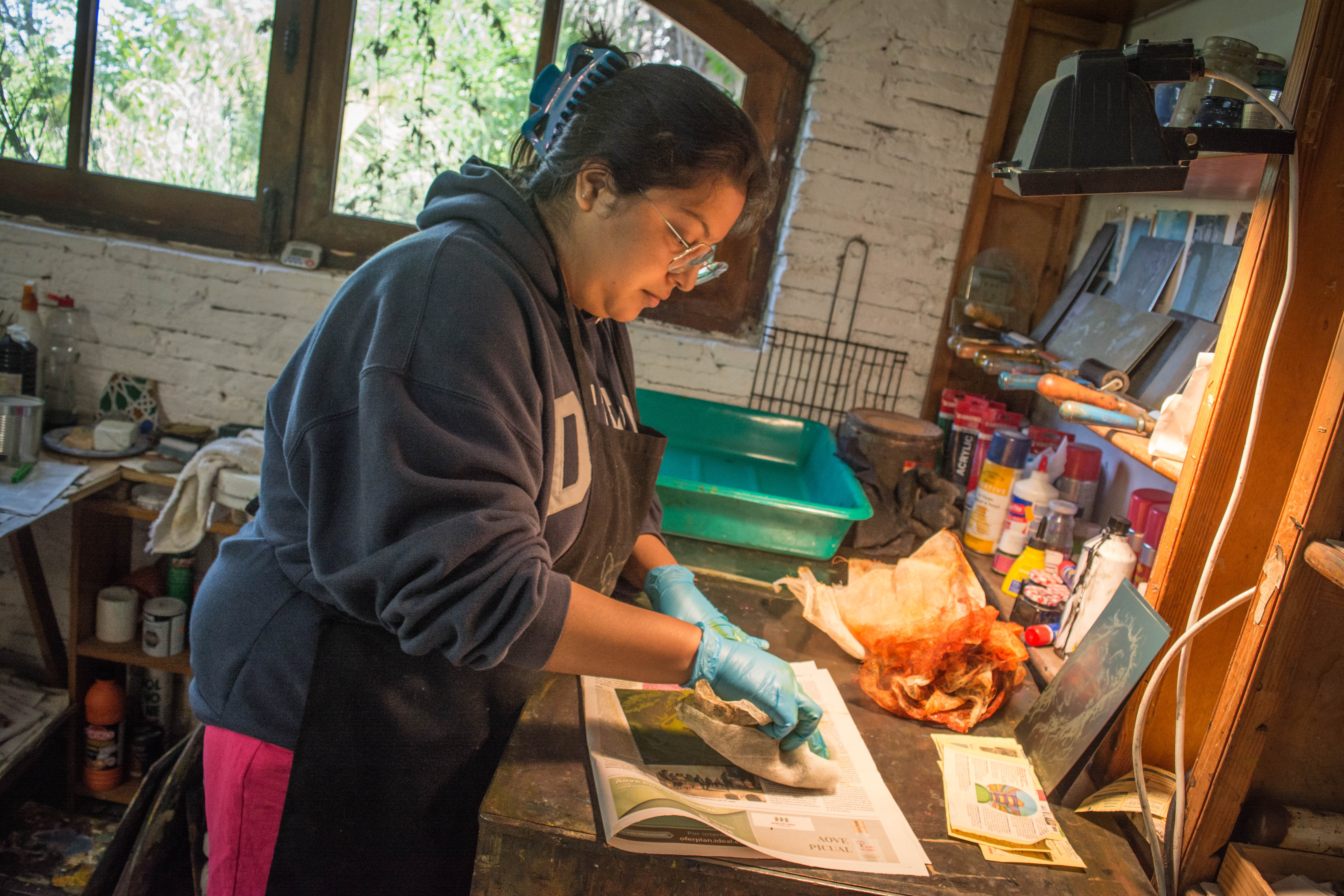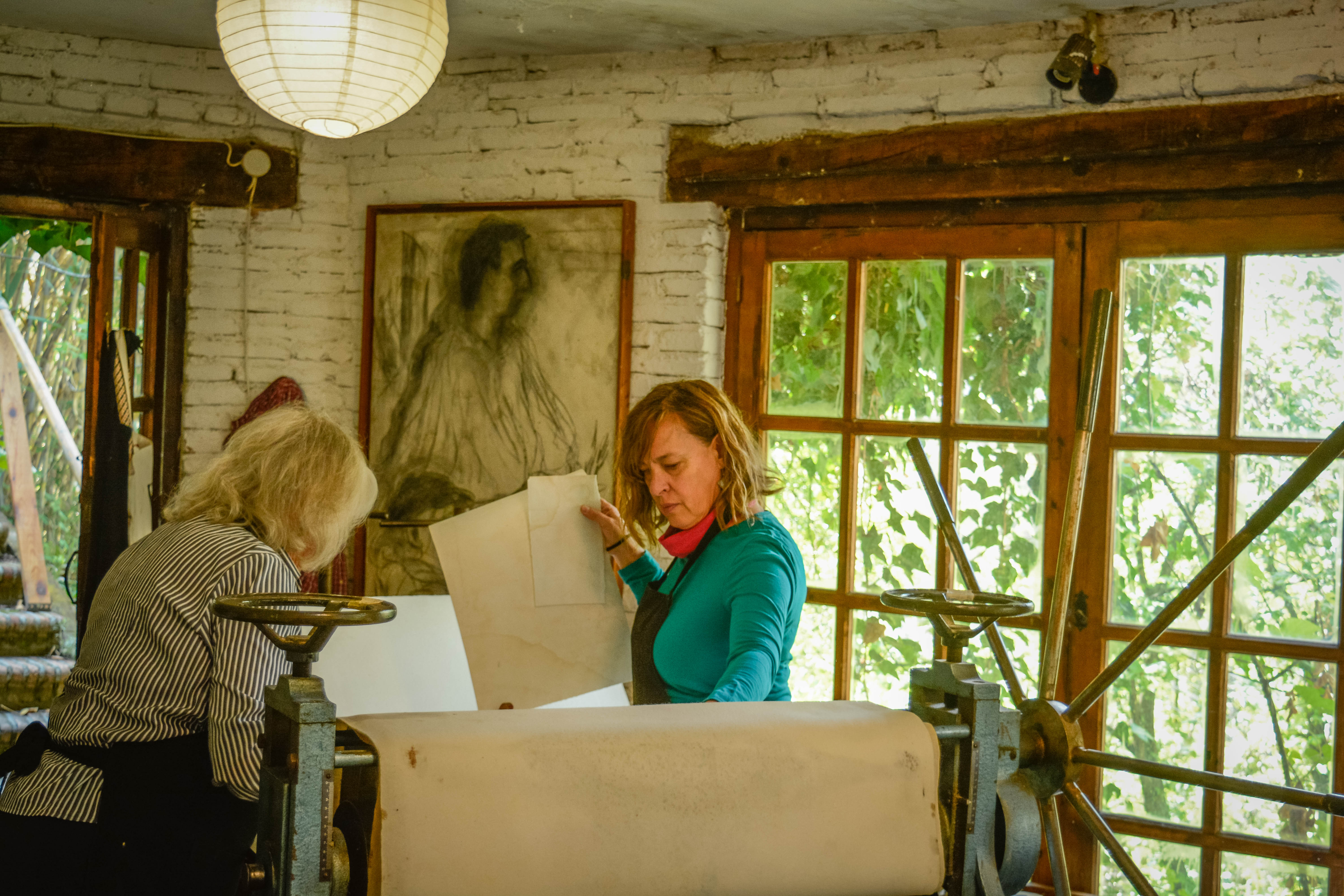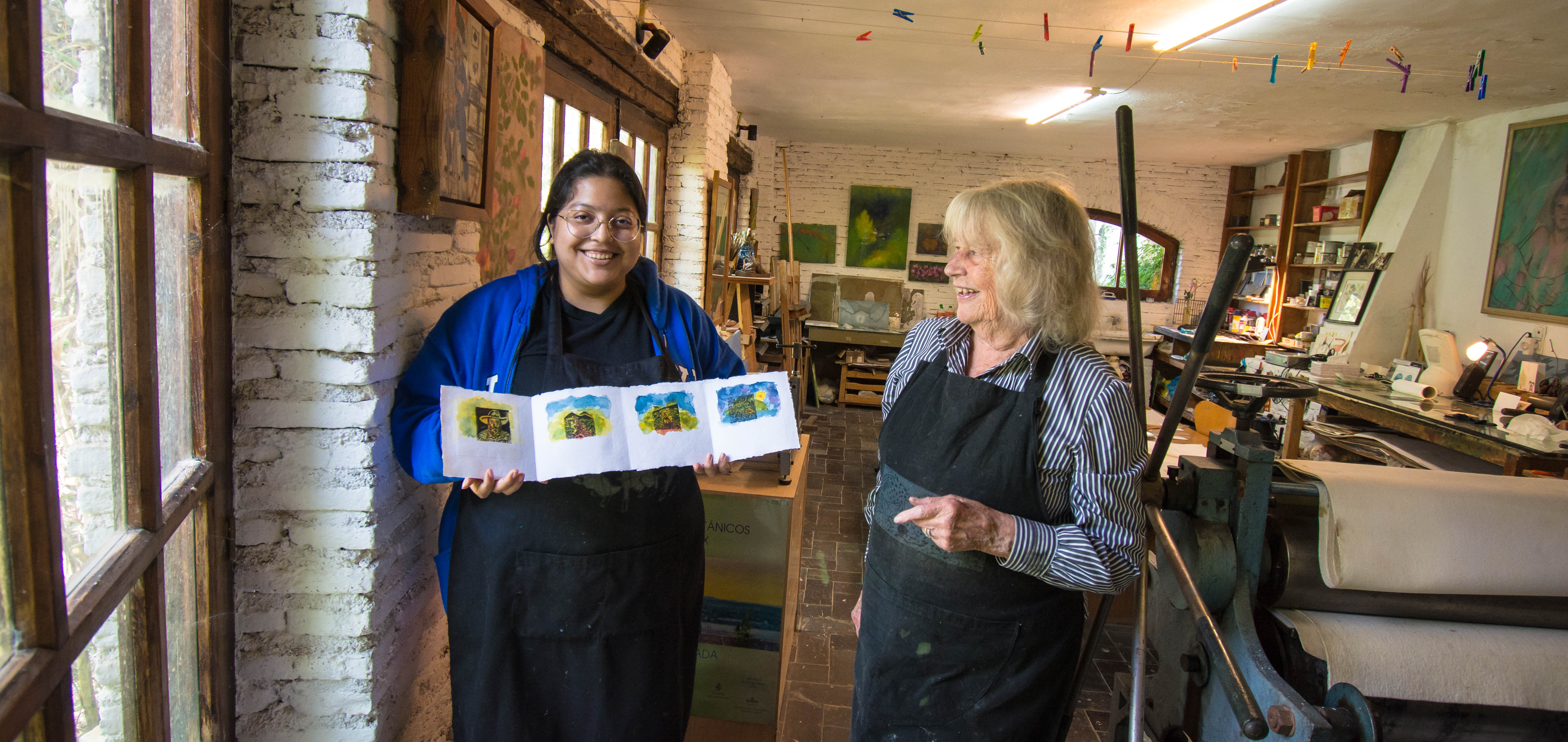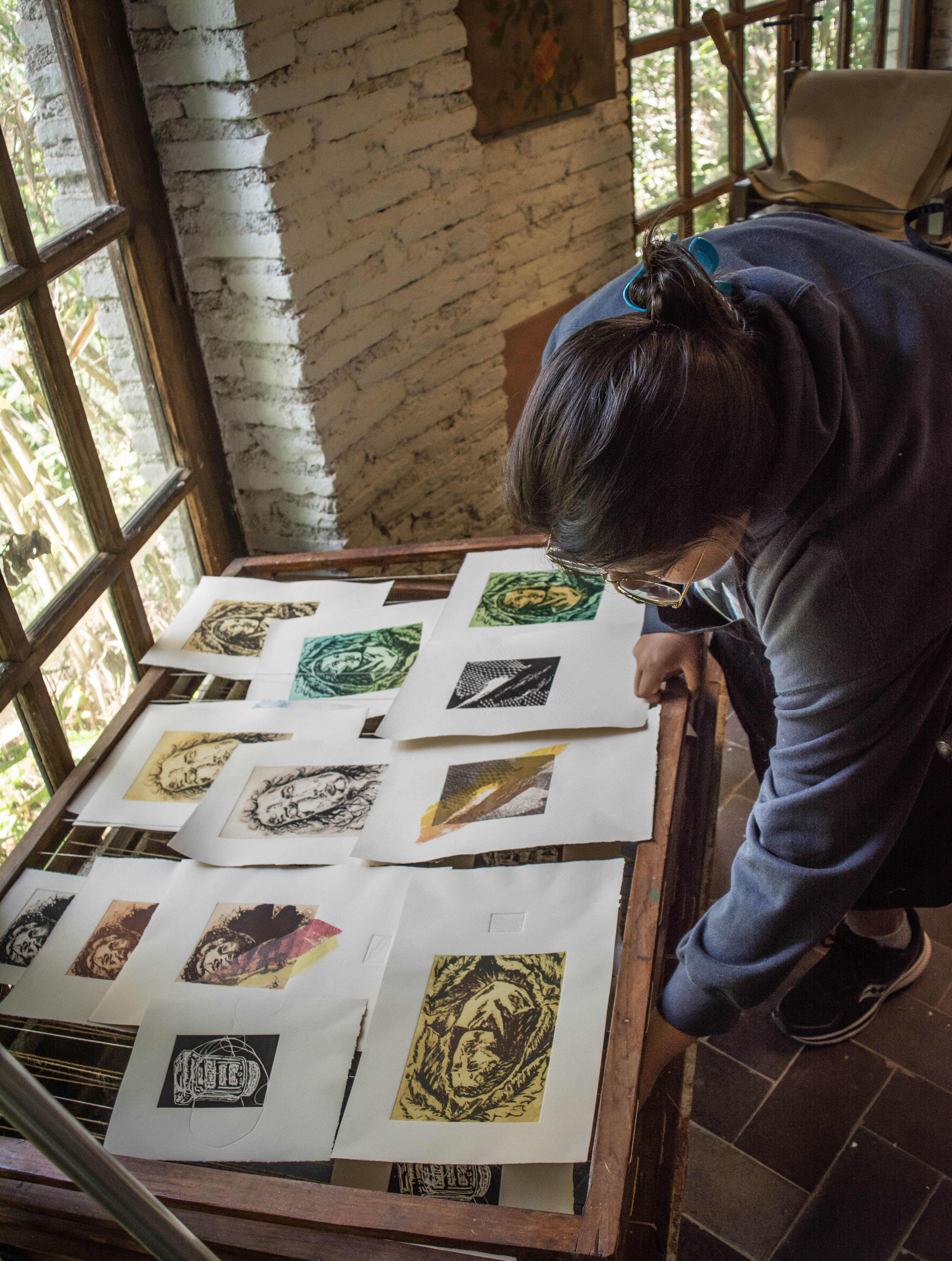 It’s almost as if it weren’t work at all. In theory, I’m not working any more. But printmakers and other artists keep popping up. And they are unlike “normal” people. They’re special, more interesting. They have more and different aspirations. The Spanish word is better: “inquietudes.” The young woman who has been here for the past two weeks is a perfect example. She has just graduated from a high-class American university with a dual major in Visual Arts and Cultural Anthropology. But she had virtually no experience in printmaking. We had to start from zero.