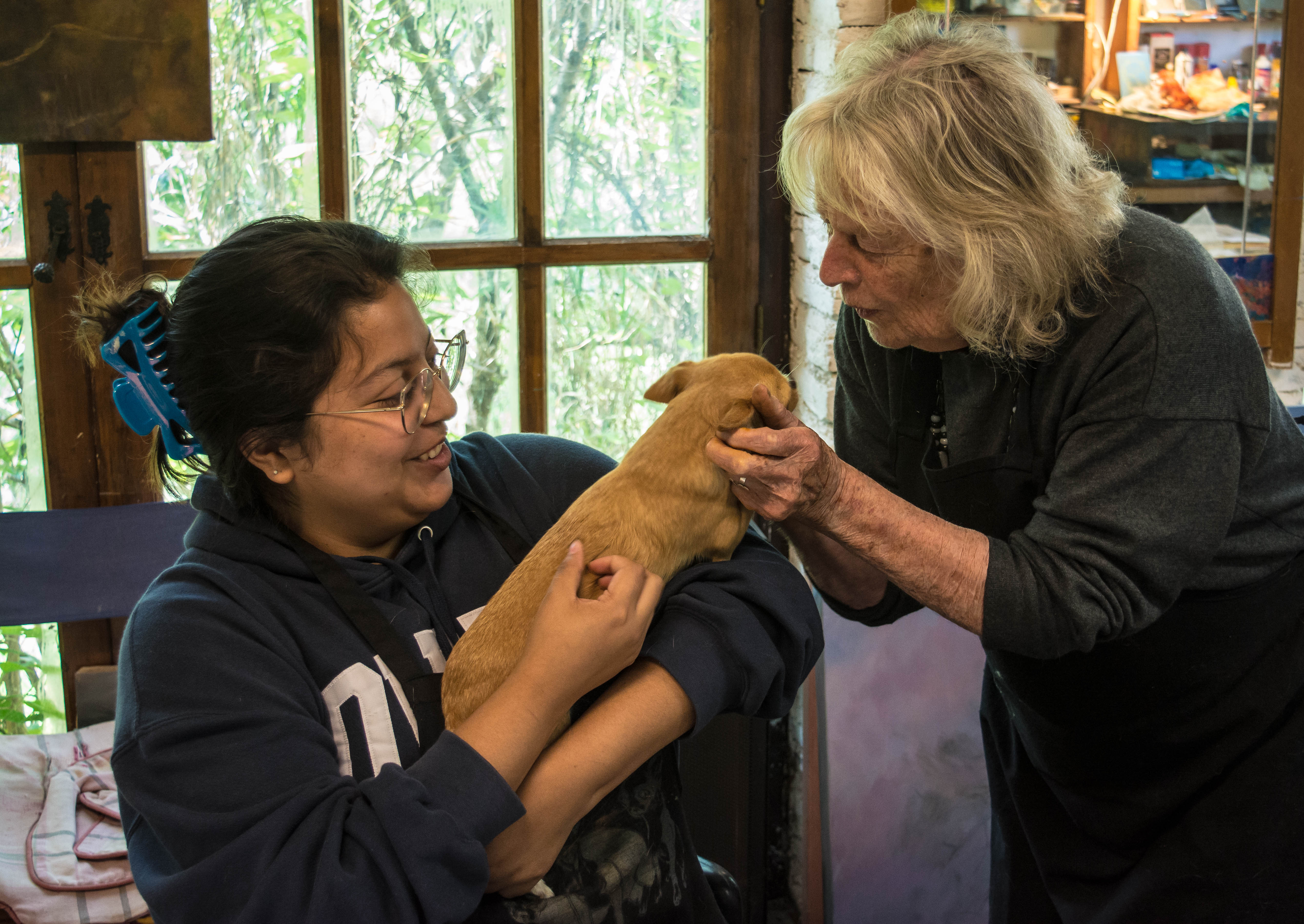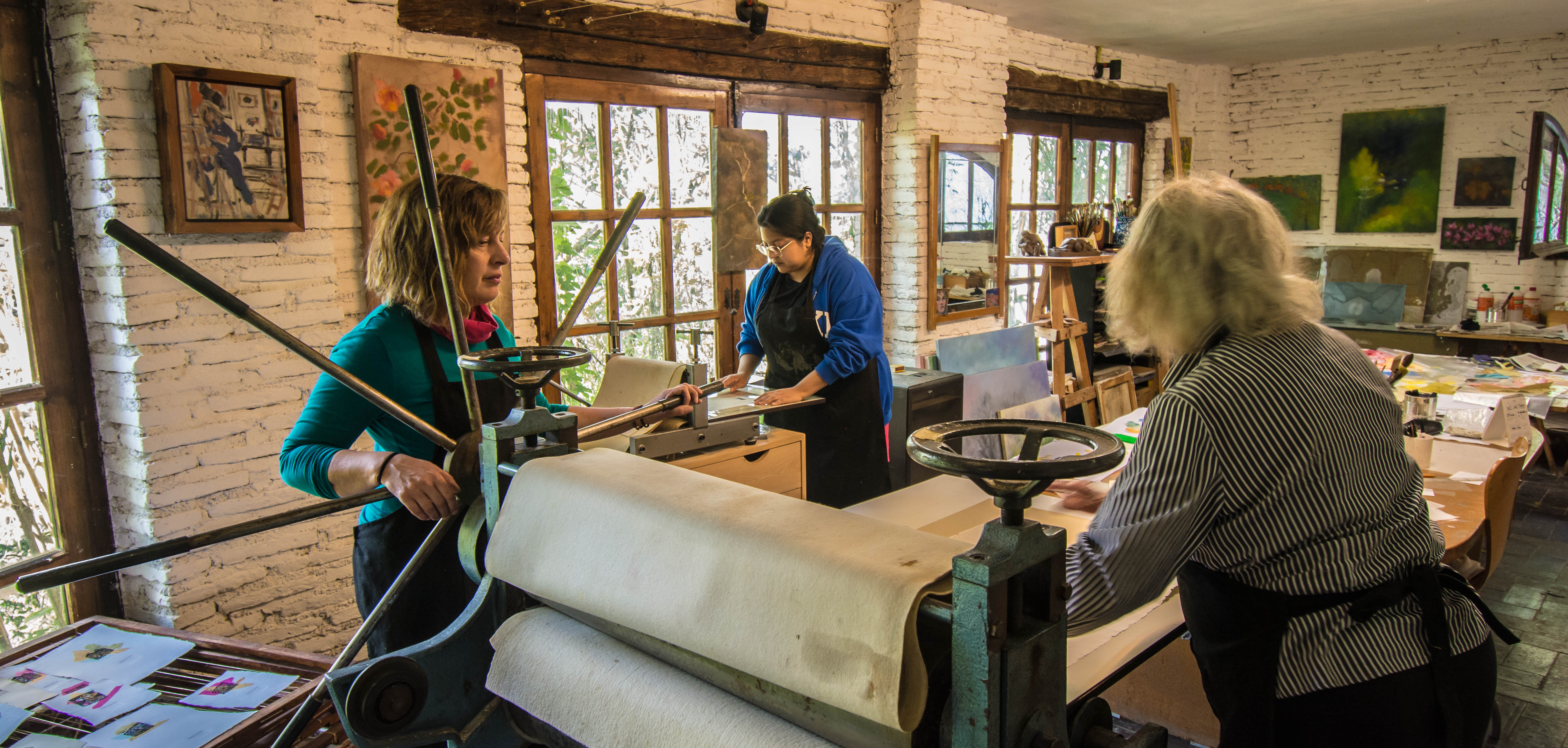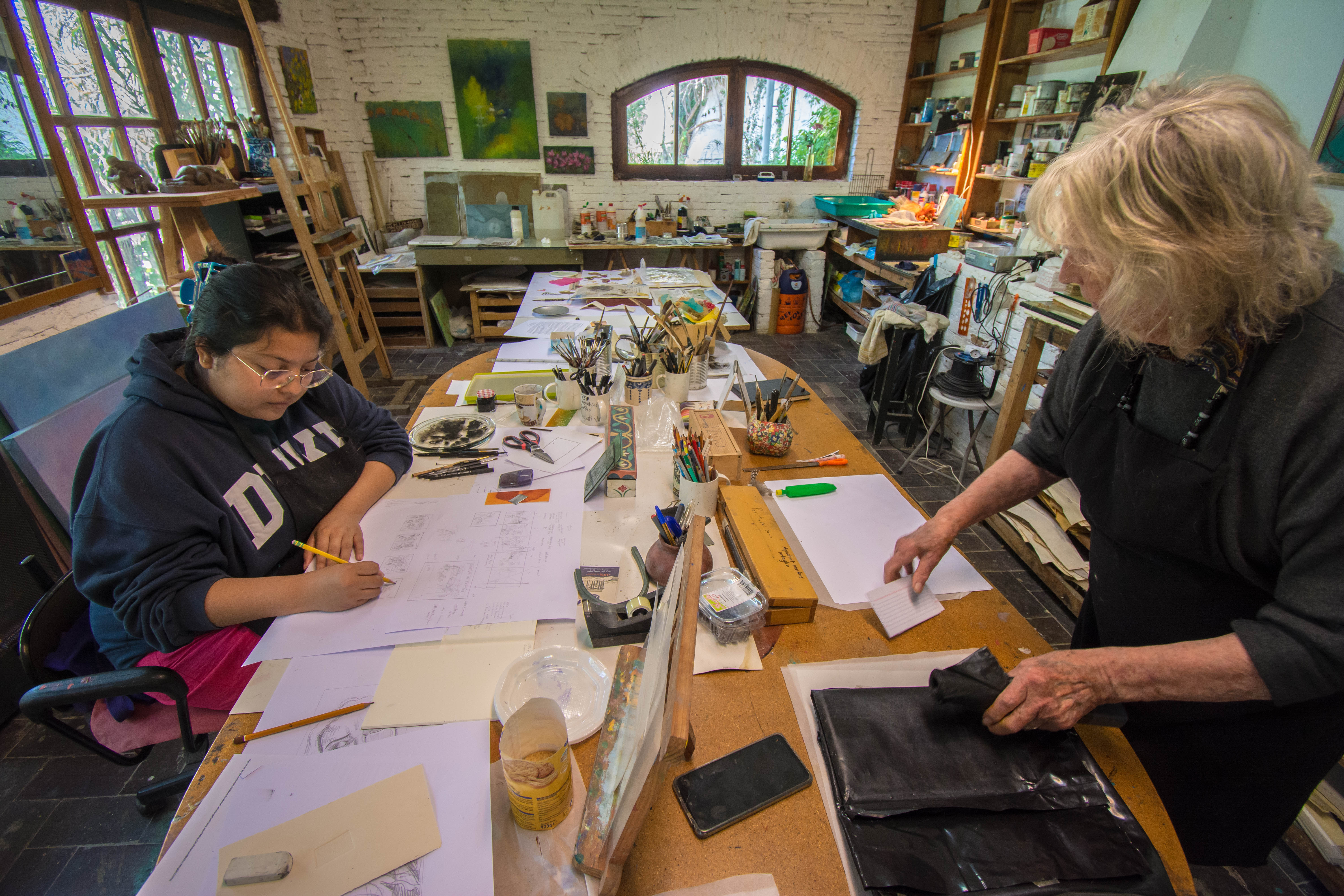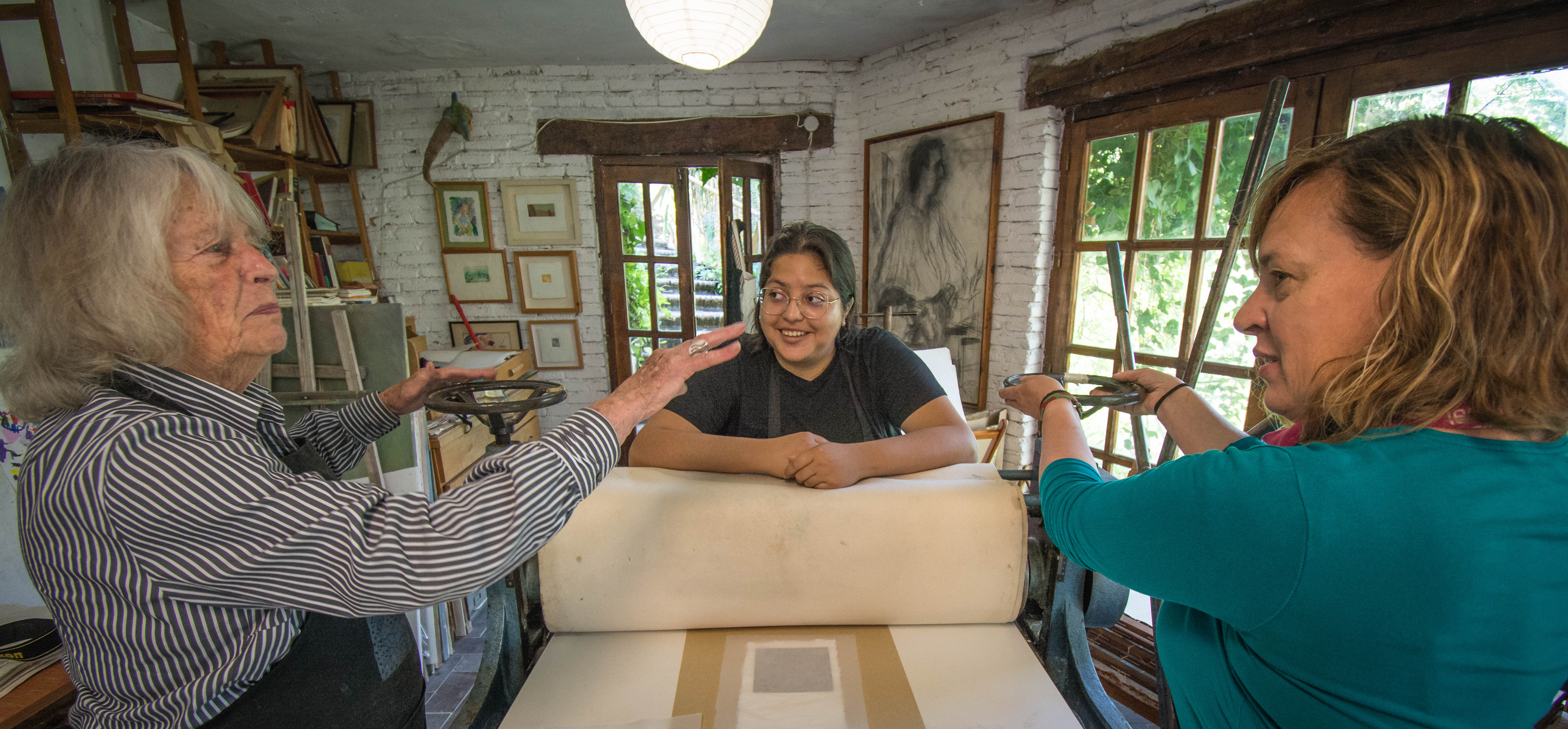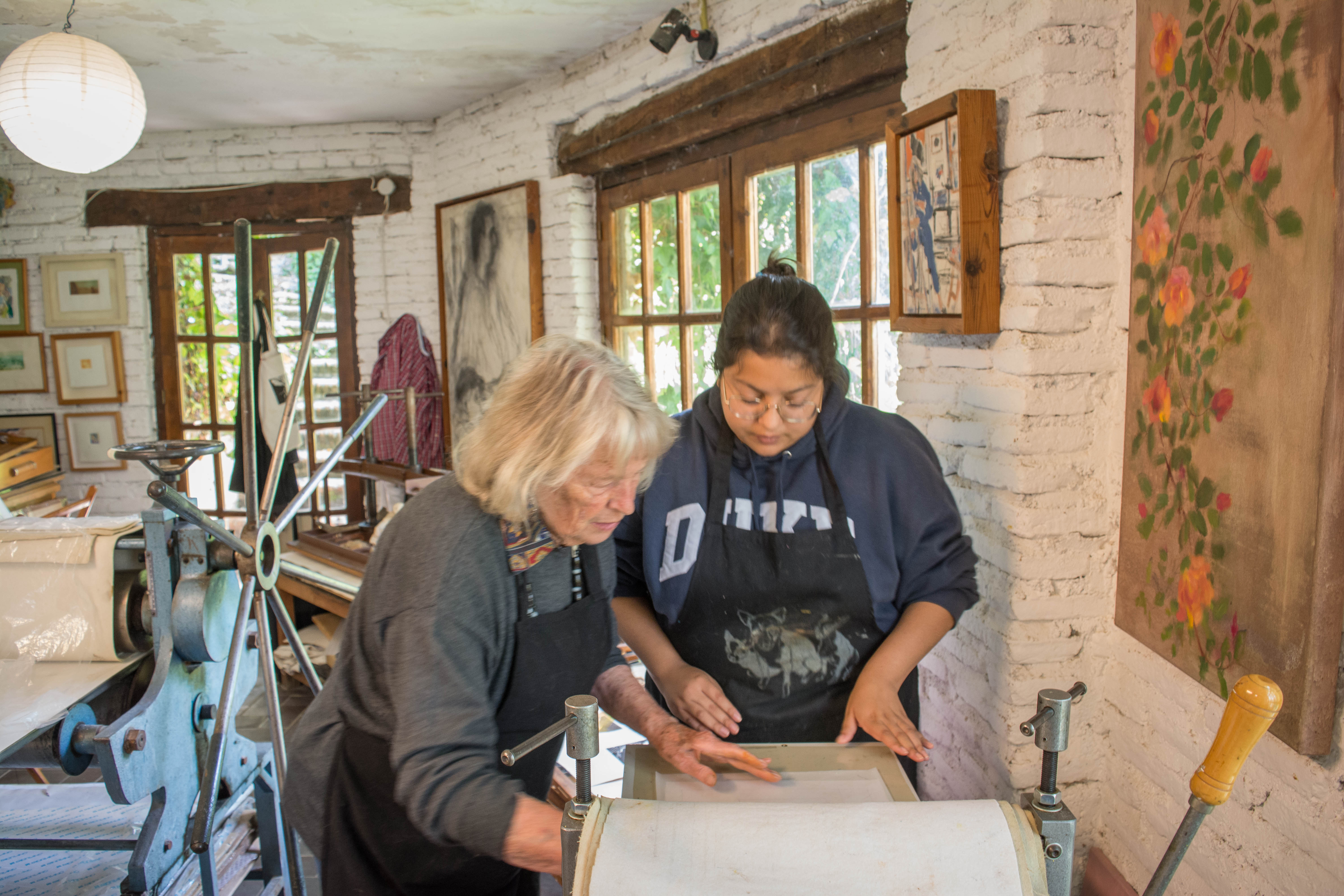 It’s almost as if it weren’t work at all. In theory, I’m not working any more. But printmakers and other artists keep popping up. And they are unlike “normal” people. They’re special, more interesting. They have more and different aspirations. The Spanish word is better: “inquietudes.” The young woman who has been here for the past two weeks is a perfect example. She has just graduated from a high-class American university with a dual major in Visual Arts and Cultural Anthropology. But she had virtually no experience in printmaking. We had to start from zero.