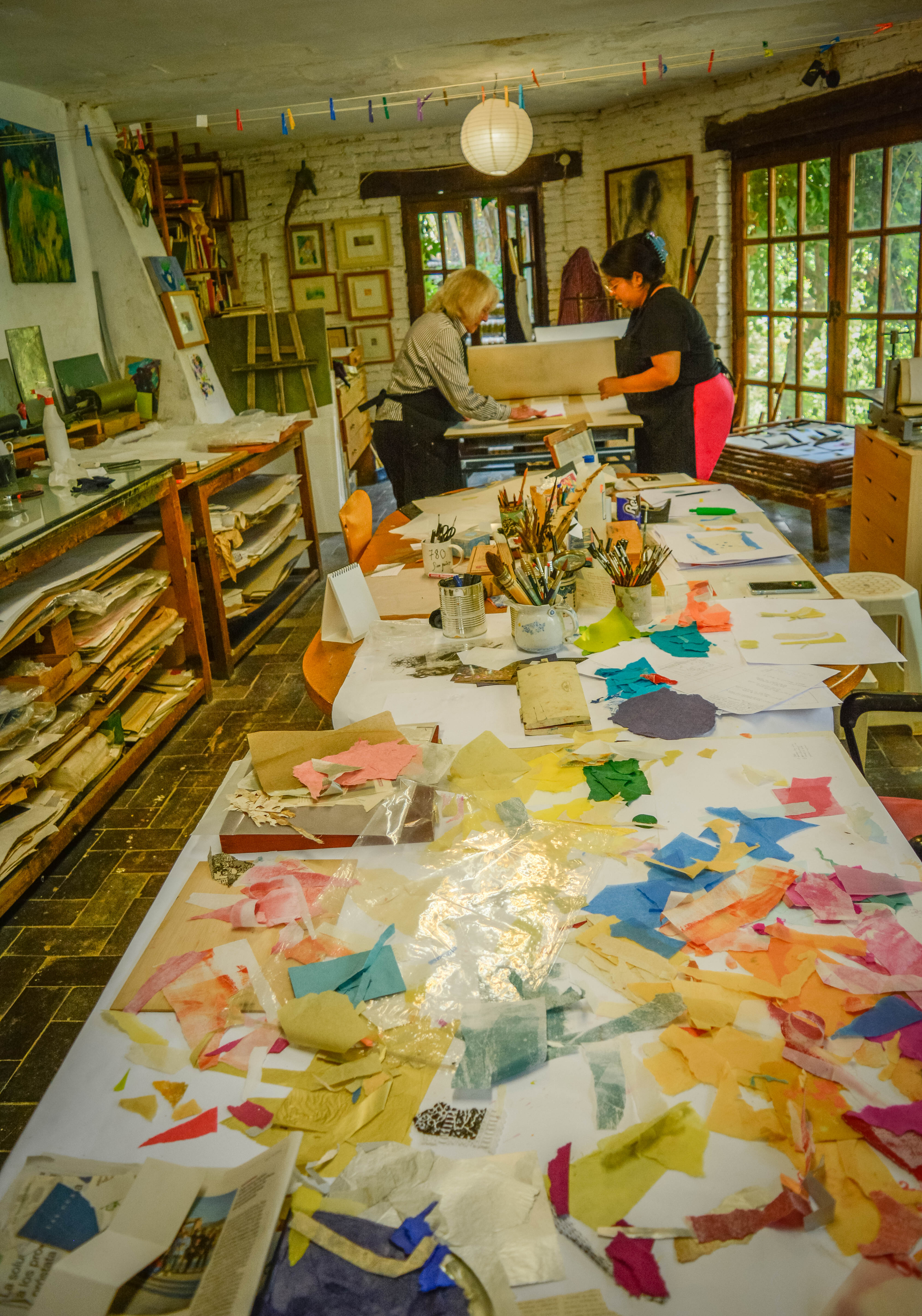 The following morning, Monday, we started work on Rebekah’s artist’s book. What a challenge. The book is little, but the essence is all there. Just over a week later, I asked my long-time helper, María José, to come in and help us print up a few examples of Rebekah’s book, on different papers and in different colors. It won’t be a numbered edition, as each book is different. Each one is a monoprint with hand-written captions. The little, accordion-style book is charming, and moving, and it taught Rebekah a lot about making prints and artist’s books. She’s taking the plates with her and can pull an edition of it whenever she likes.