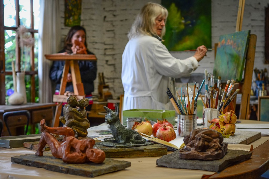 When the Foundation closed in 1980, I bought one of the etching presses and enough tables, equipment and materials to set up a print workshop in my studio. (I still use some of those inks. They had wonderful quality in those days.) I had 50 square meters of space in the studio, ample for installing a printmaking workshop, but it didn’t leave much room for painting. Along with that hindrance, my printmaking courses quickly gained popularity with artists from around the world. My husband, Mike, insisted on making me a website for my workshops. I thought that was ridiculous(!) but he went ahead with it and it started to function. Before long I had neither the space, the time, nor the disposition for painting. But I always missed it sorely. It only took me 40 years to get back to paint in a serious way. It was in a three-month period before of my recent exhibition. That mini-retrospective reignited my passion for paint.