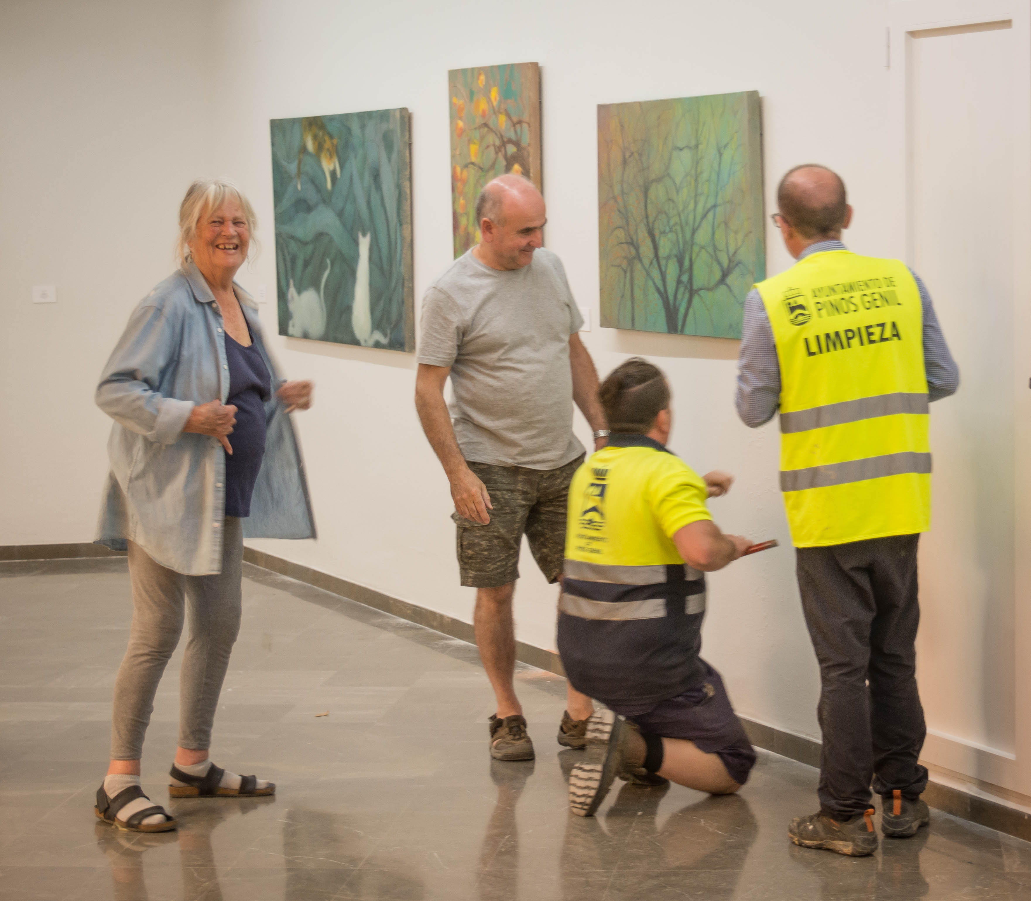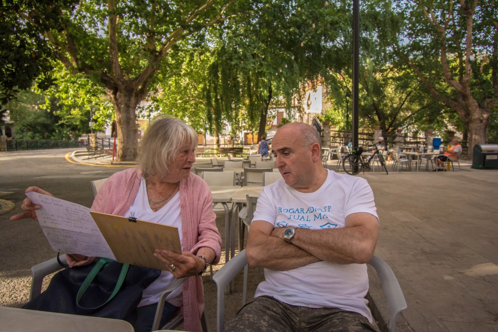 It’s only an eight-kilometer (five-mile) drive from Granada to our village and a lot of Granadinos came out to see the show. Juan Vida’s presence attracted a lot of them. He’s a well-known painter in Granada and further afield. We also got a big boost when Antonio Arenas, a reporter from Ideal, one of the Granada local papers, came out to cover the show and produced a big piece on it which included an interview with me in text and video, along with clippings from previous events. Without Antonio’s help, we wouldn’t have had so many visitors. (He had a big morning in our village. Here are some links to his report, in Spanish, though the images are images: https://bit.ly/30HQ7FE, this one to the exhibition, https://bit.ly/3YLA26i, this one to my illustrated cookery book.