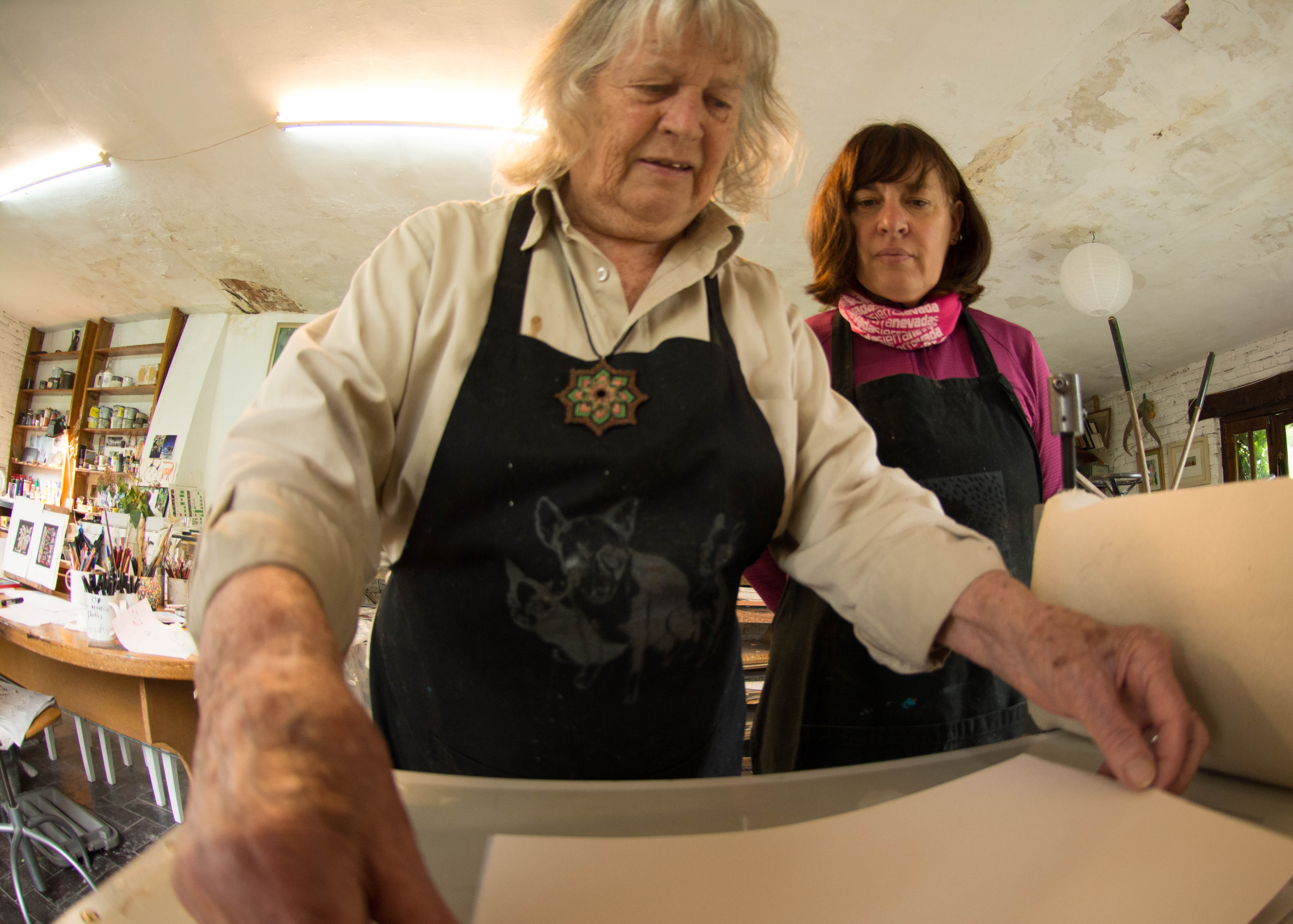 So each DIN-A4-sized recipe has Ricardo’s offset text on one side and my hand-pulled original print on the other. One of the advantages of living in the same place for 50 years is that you know whom you can rely on. And our pueblo, Pinos Genil, is a great place to live. I have an added advantage here. In the late 1970s I used to give painting lessons in the town square to all the children who were interested, and today I am privileged to have all of those children as 40-and-50-year-old friends.