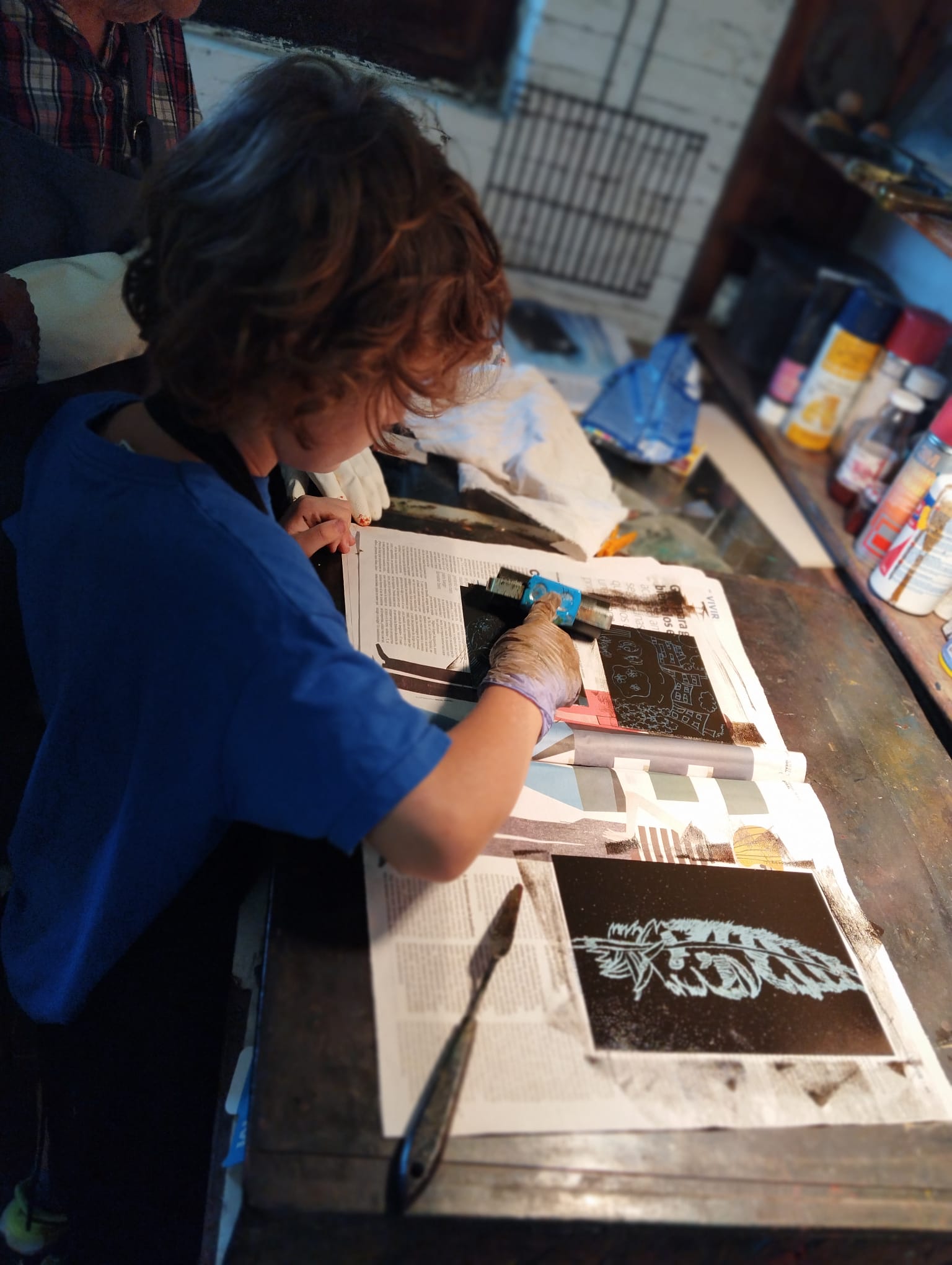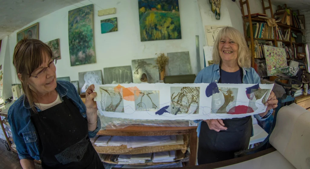When Sofía and Bruno left I went back to painting, seamlessly. I discovered it could be done. A couple of months later I heard from Iram, an art professor from the National School of Art in Islamabad, Pakistan, who spent a month with me a couple of years previously. I couldn’t say no. There was a period of years when I had a series of women from the Middle East here making prints, and they all ended up my friends. They were from Kuwait, Saudi Arabia, Bangladesh… Little by little, the trickle of special-needs artists became a slow flow. I did nothing to encourage it, but all those years of printmaking courses left a clear path to my door. Some of these print pilgrims were friends. A fellow artist, Esperanza Romero—I got her started in printmaking and she introduced me to working with clay—showed up one day with her sister, Paloma.