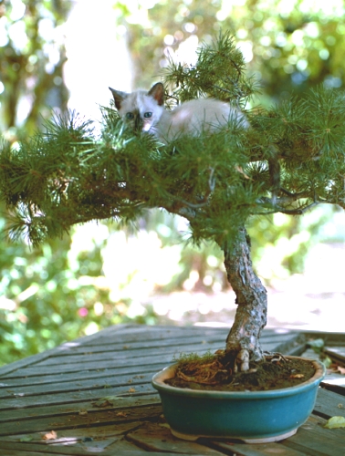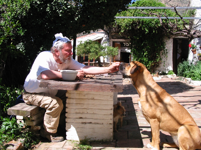 The animals seem to have played a larger role in our lives over the past year. I suppose it’s because we’re living in closer quarters, with a normal-size bed in our Gallinero cabin. Our animals are well loved. You can tell just how well by how much we let them get away with. Ours–two dogs and three cats–get away with murder. Bundy, our young tom cat takes diabolical delight in pawing things off tables and workbenches. It’s usually not too serious, though. They eventurally turn up under a cupboard or a sofa within a couple of months. Cuca, our 14-year-old shi-tsu/grifon cross, was given to us by a friend when she was 10 months old because she resented him going to work. She is an excellent communicator. To inform him of her discontent she would jump up on his bed and pee on his pillow. He was so happy when we told him we’d take her off his hands.