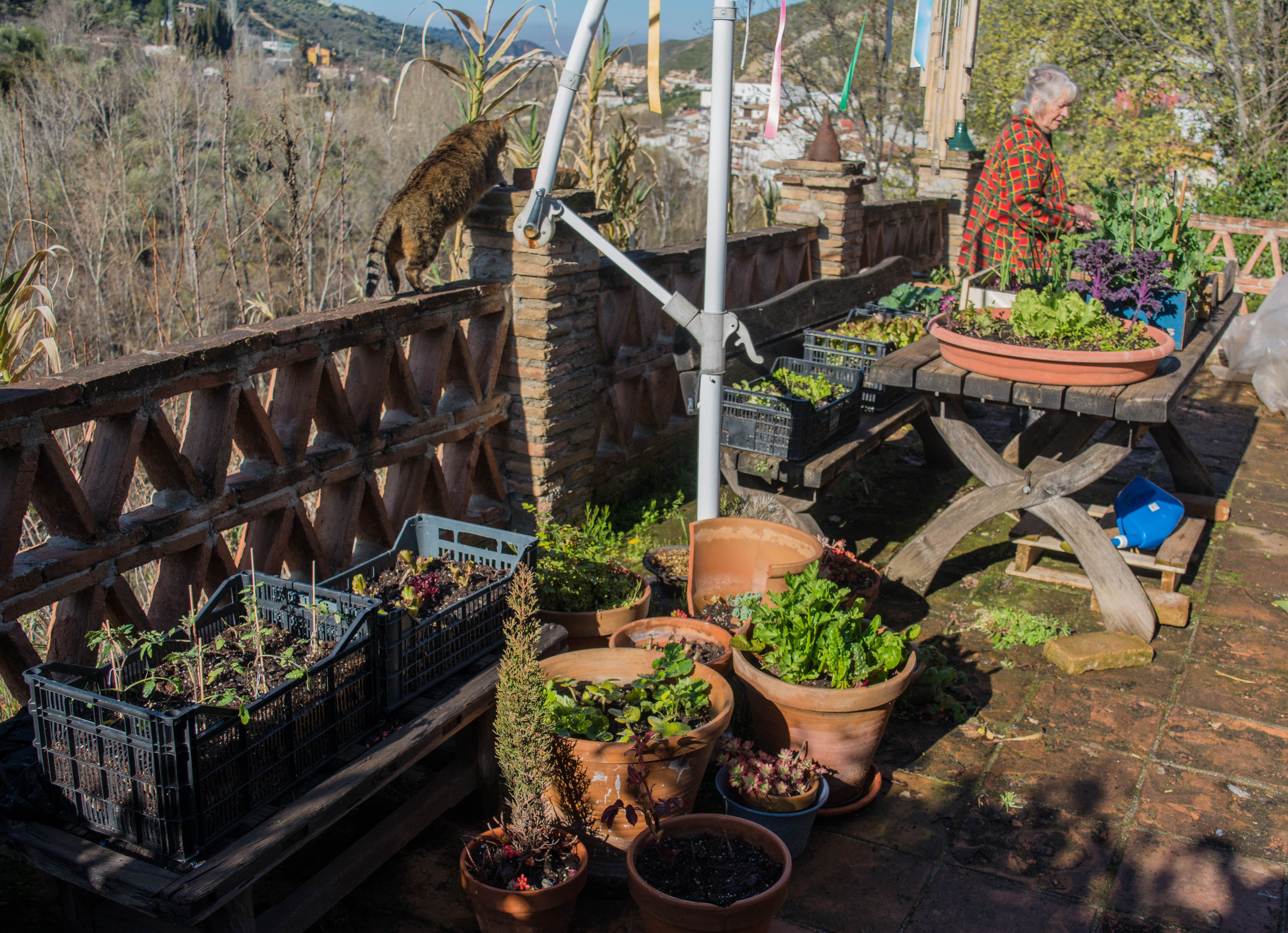 Now that it no longer freezes at night my garden in boxes is growing by leaps and bounds. I’ve added a few more boxes and am looking for more space. Mike suggested under the roof overhang of the Gallinero, but I think it would get too much direct sun in the summertime. We have a strategy for the month of August. That’s our month for late nights (una delicia), early mornings, long siestas (more delight) and long drinks. The hard part is going to bed late and getting up early. But you soon get used to it. The long siesta helps.