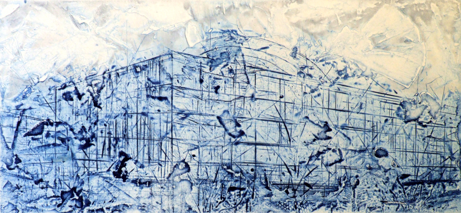 This print, which I made 8-10 years ago, was actually made for a commission, the biggest one I ever got. (Some day I’ll tell you how I got it.) The client was a Parisian real-estate company with 1,000 employees and they wanted Christmas presents for all of them. The only condition was that the images had to be versions of the buildings they were making in La Defense quarter, outside of Paris. They accepted all of the prints except this one. It seemed that the architect had changed the look of the building, and this print was no longer a true representation.